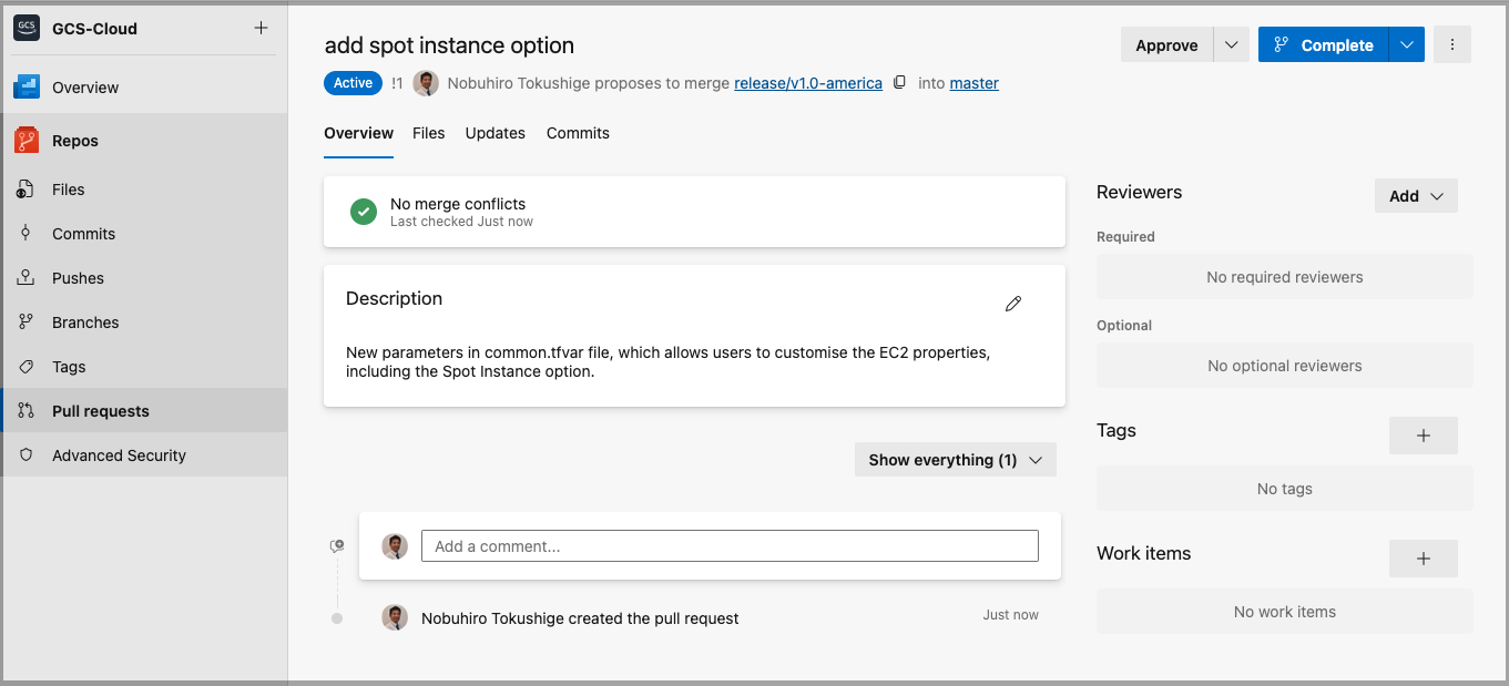 - Review and complete the PR when you’re ready (or assign reviewers if required)