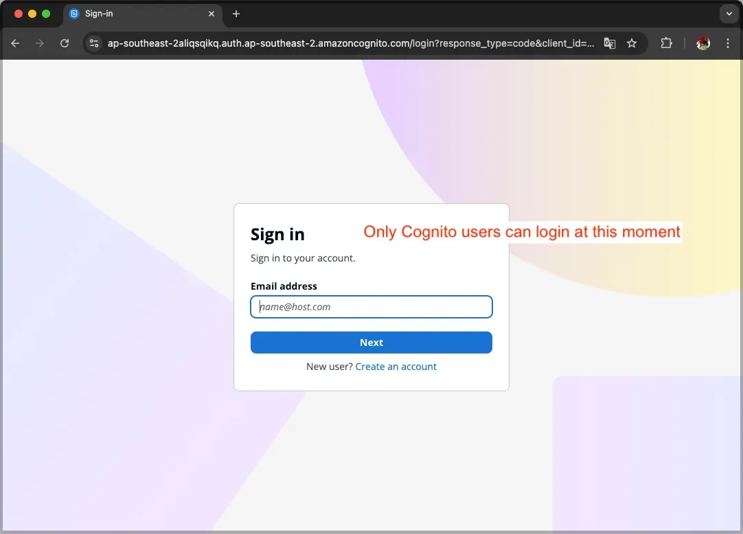 Our web application currently uses Amazon Cognito User Pool for authentication, limiting access to Cognito-registered users only. This guide demonstrates how to extend authentication capabilities by implementing Microsoft Entra ID federation, allowing your enterprise users to access the application using their existing Microsoft credentials.