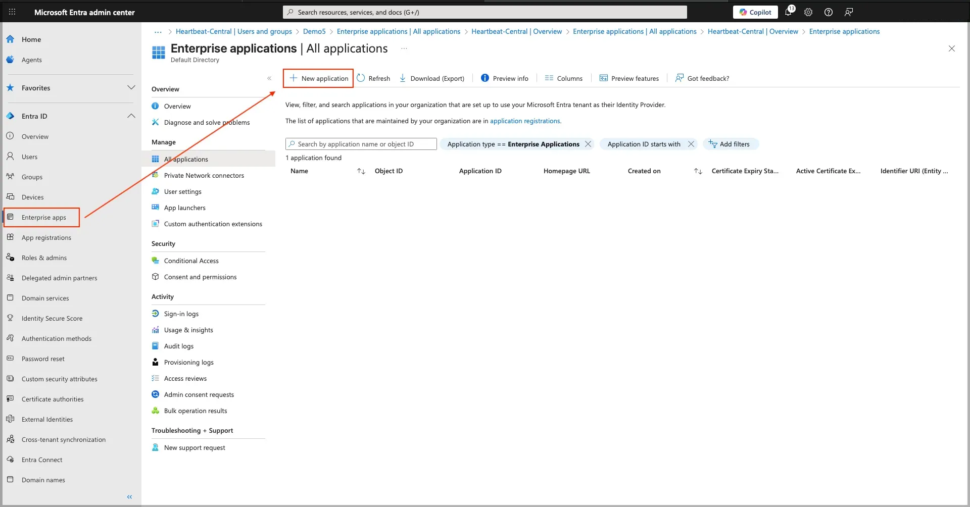 - In Azure Portal, access Microsoft Entra ID, then select Enterprise applications
