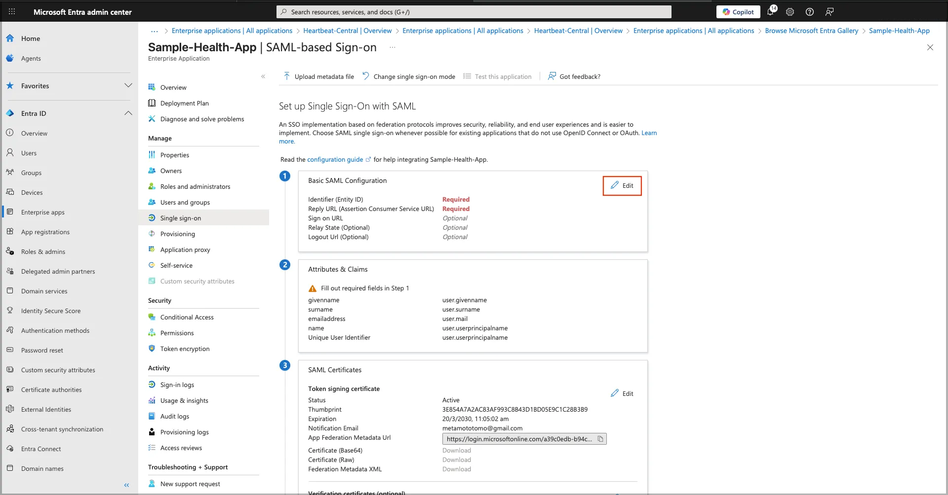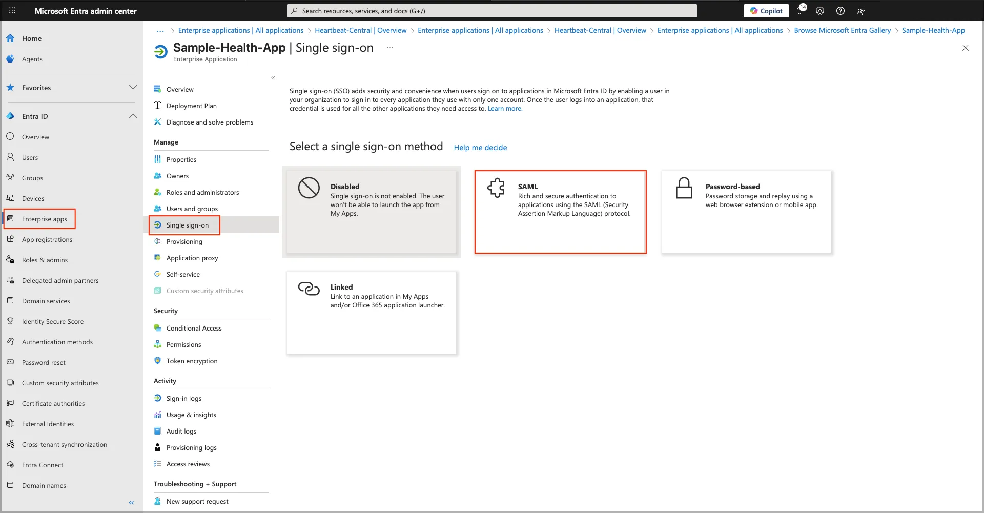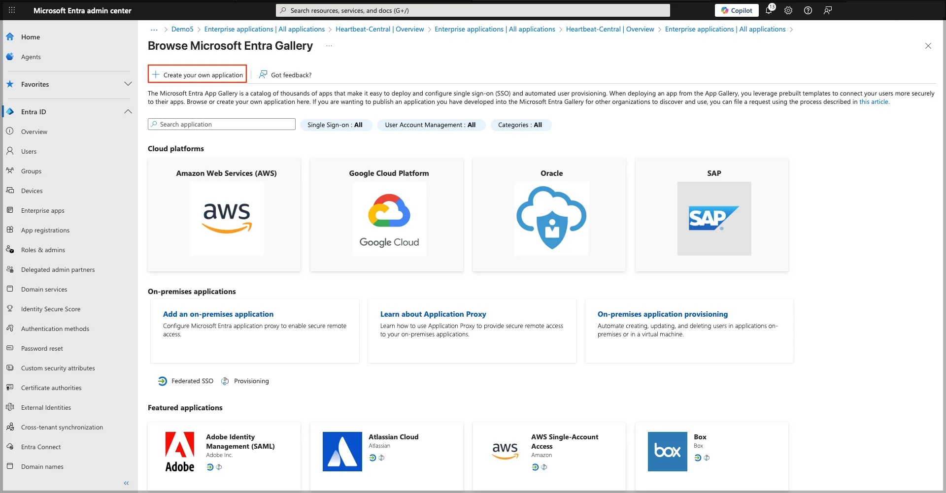 Begin by setting up a SAML application in Microsoft Entra ID to establish the identity provider side of the federation: