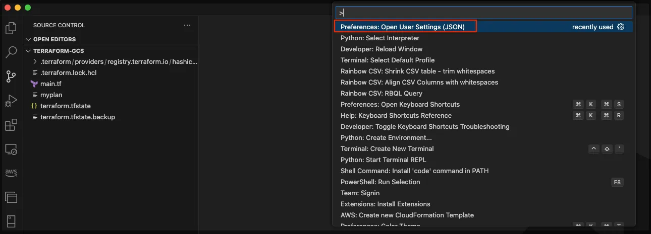 Search for “Preferences: Open Settings (JSON)” and select it.