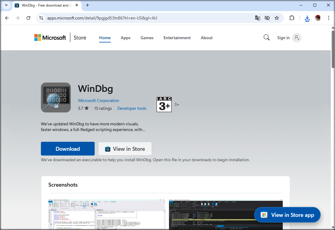 Open Microsoft Store and search for WinDbg Preview.