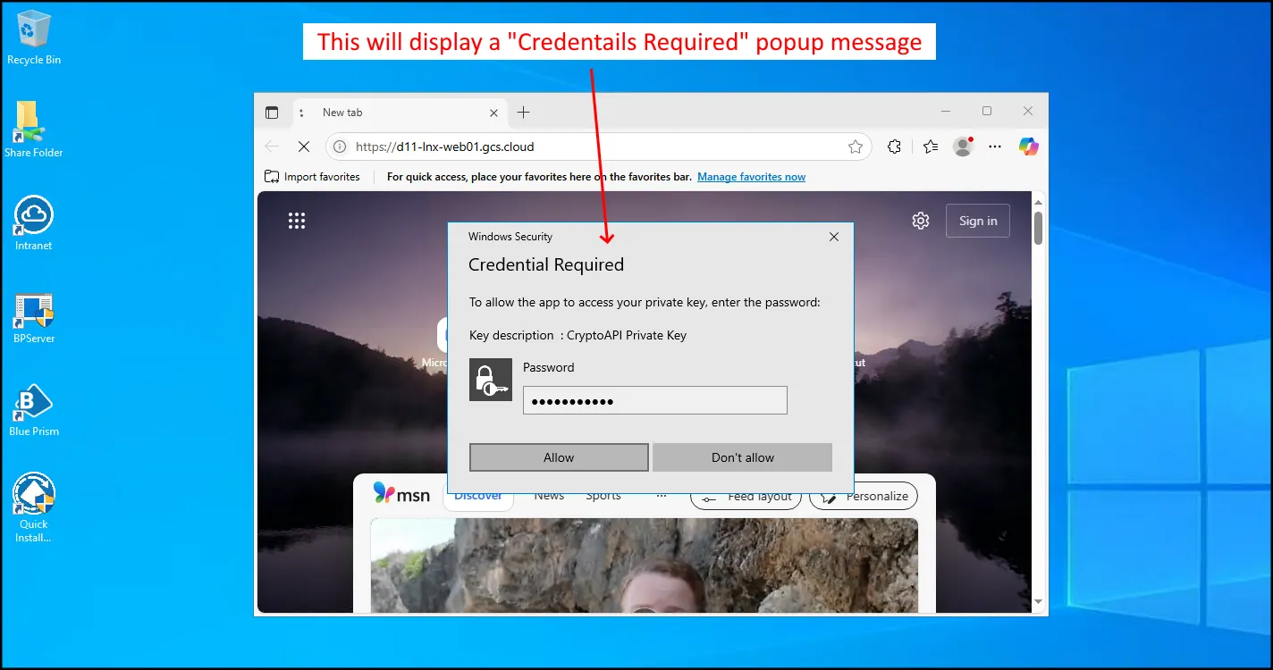 This setup will show the certificate selection popup on Windows browsers when accessing the site.