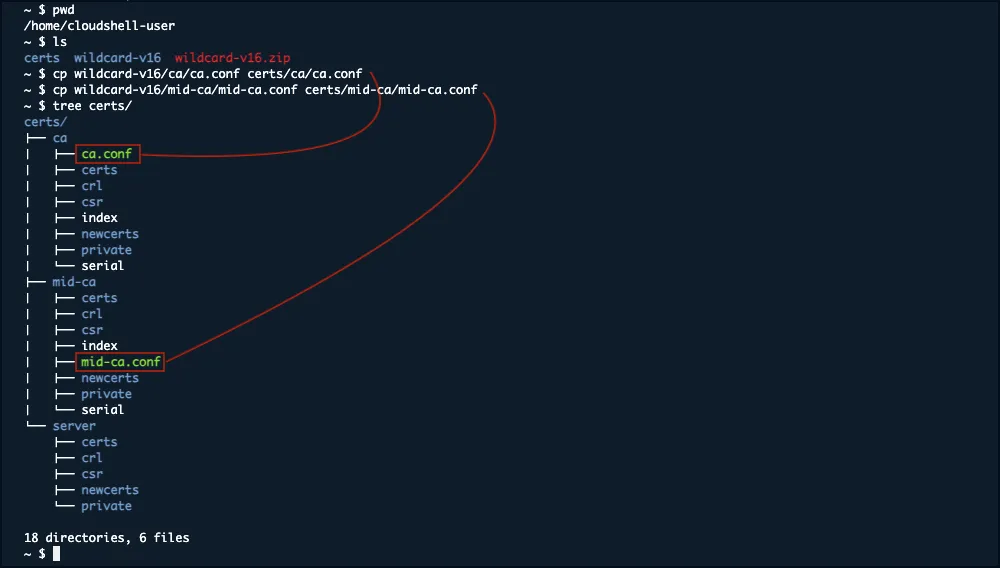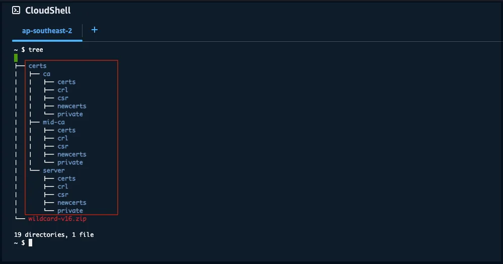 mkdir -p certs/{ca,mid-ca,server}/{private,certs,newcerts,crl,csr}