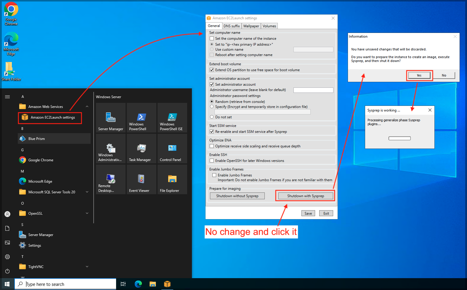 Open “Amazon EC2Launch Settings” and click ”Shutdown with Sysprep”