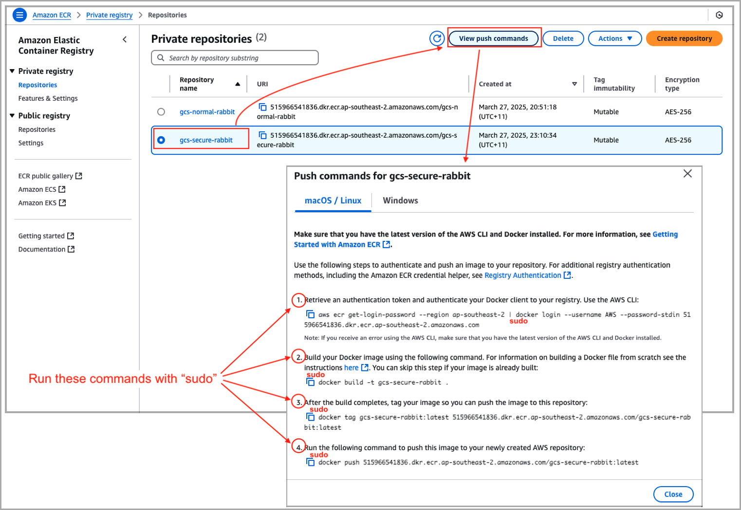 aws ecr create-repository --repository-name gcs-normal-rabbit --region ap-southeast-2